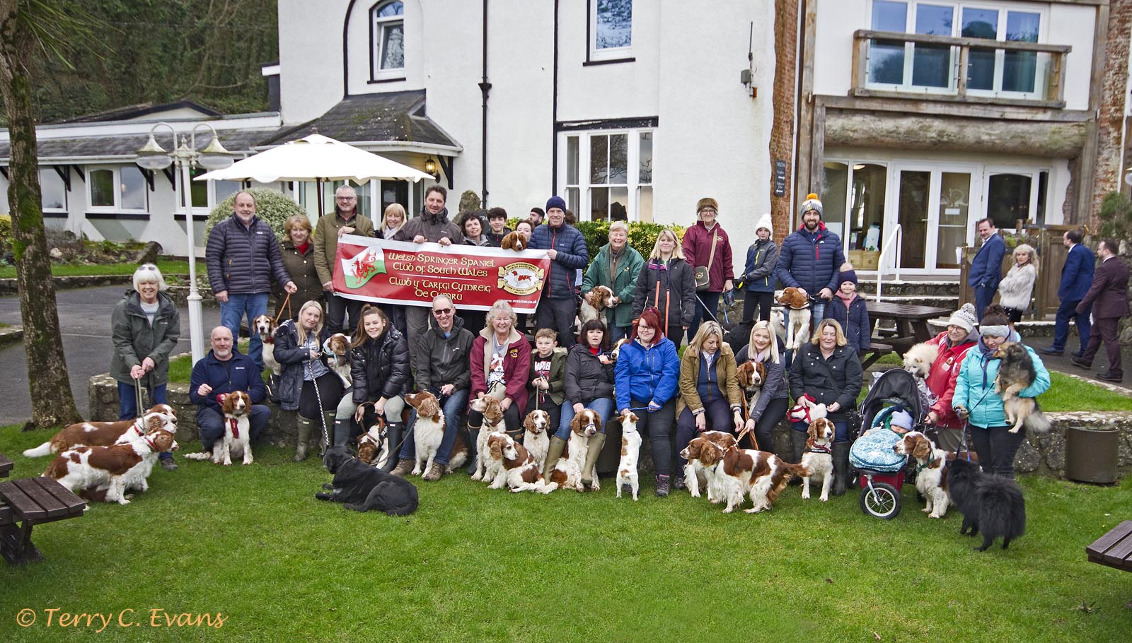 Again there were almost 40 humans and over 30 dogs. We had our customary cup of coffee at the Oxwich Bay Hotel before all lining up for the obligatory group photo.