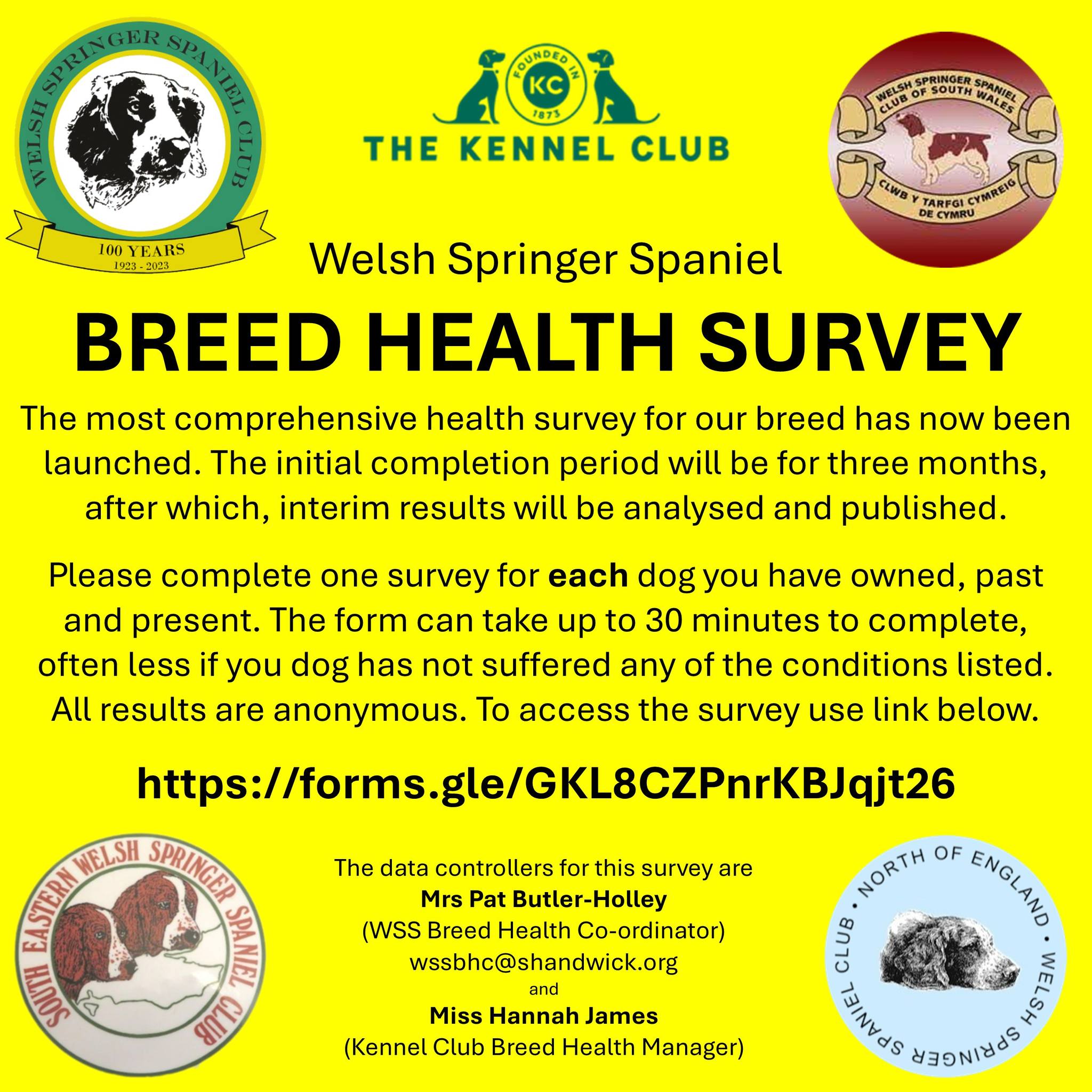 The data controllers for this survey are Mrs Pat Butler-Holley (WSS BHC), This email address is being protected from spambots. You need JavaScript enabled to view it. and Miss Hannah James (Breed Health Manager, The Kennel Club).